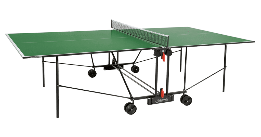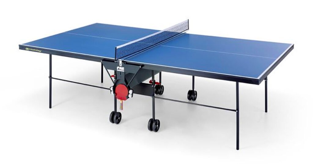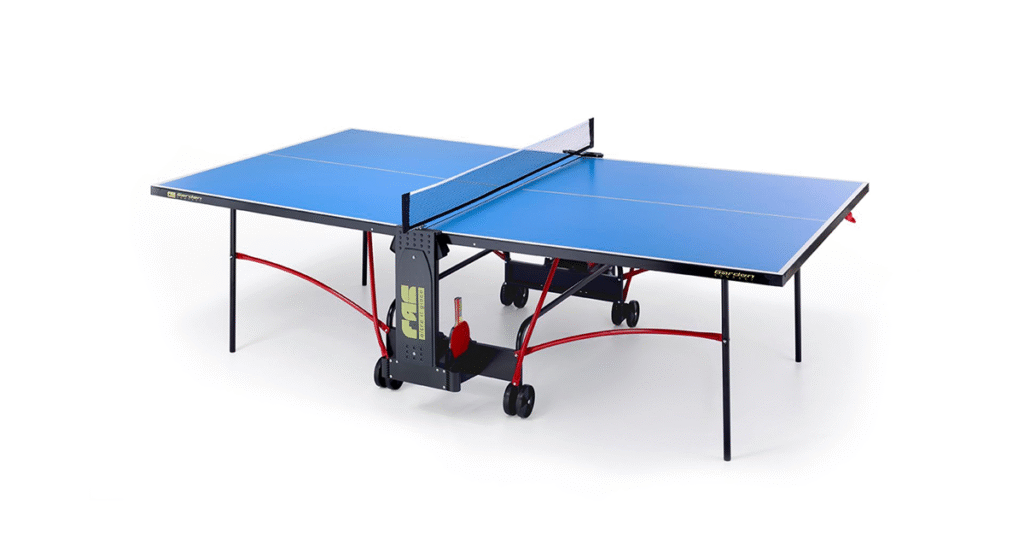 Modello per interno, pieghevole, con piano gioco verde o blu ha misure regolamentari da torneo, indicato per il gioco amatoriale e per l’allenamento.