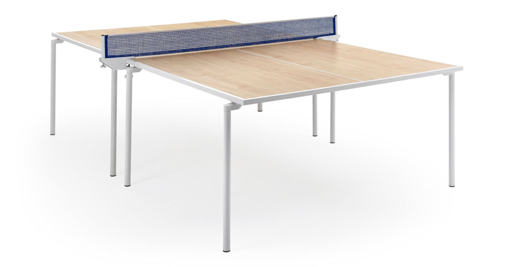 Spider è un tavolo da ping pong innovativo, capace di trasformarsi all’occorrenza in un tavolo conviviale e di scomporsi con pochi gesti.