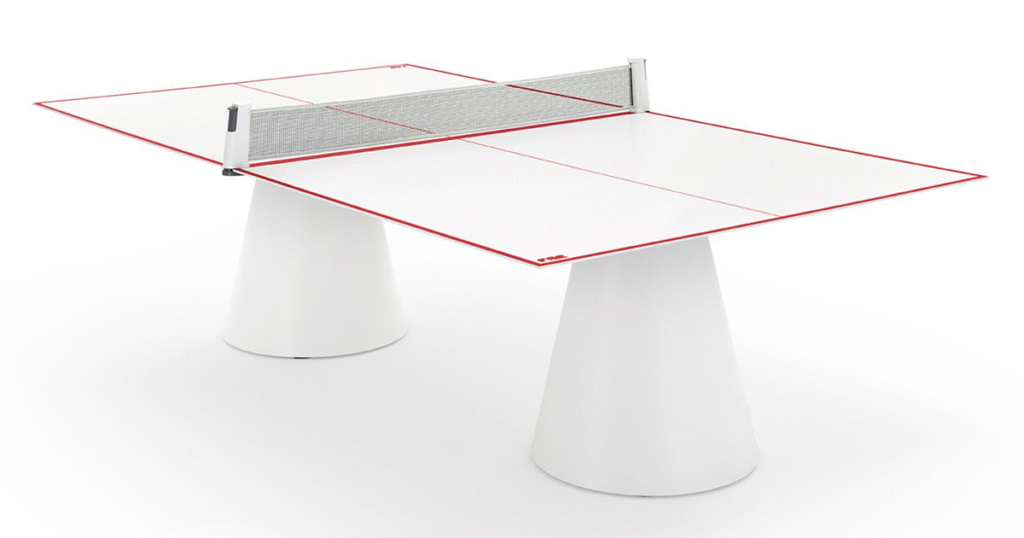Dada si sostiene grazie a due basi coniche, che ridefiniscono la rappresentazione classica del ping pong. Perfetto negli spazi HORECA